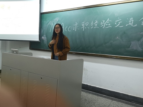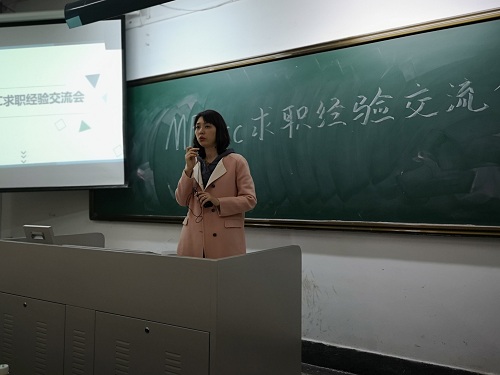 活动伊始,华老师上台做了简短发言。她说道,目前就业形势严峻,举办此类交流会非常有必要,希望同学们可以从研一就对自己严格要求,对未来的职业生涯做出合理的规划,制定明确的学习和求职目标。