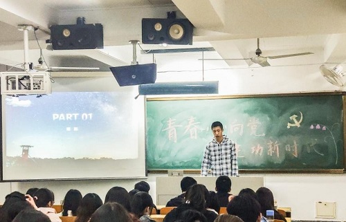 在主持人向大家介绍了此次活动的主题之后,结合“江苏共青团”中“青年大学习”专题,同学们一起观看了主题教育短片。祖国自改革开放以来在科技、教育、工业等领域的巨大变化与进步,让同学们感到深深的自豪。