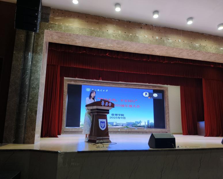 为强化学生安全意识,夯实学风建设,2025年9月30日下午15点,我院于华礼堂召开2025级新生年级大会,会议由2025级辅导员蔡珺老师主讲,围绕军训总结、安全教育、民族政策等核心内容进行宣讲说明,为2025级新生军训后开启大学学习生活明确方向、奠定基础。